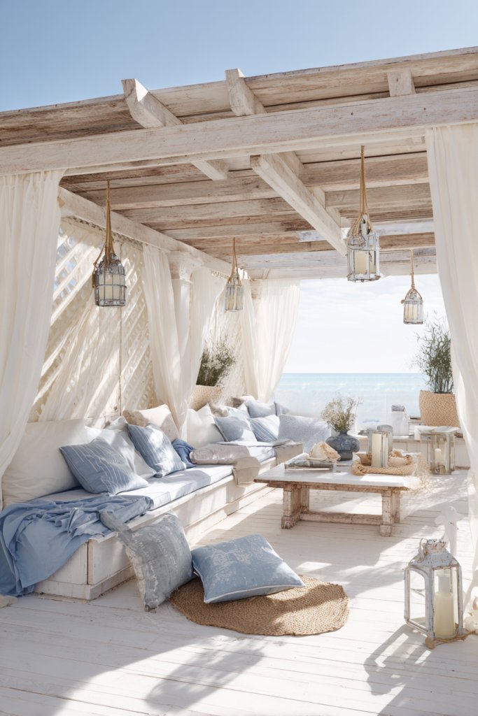 10. Coastal-Inspired Pergola with Light Hues and Nautical Decor