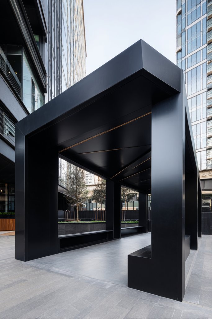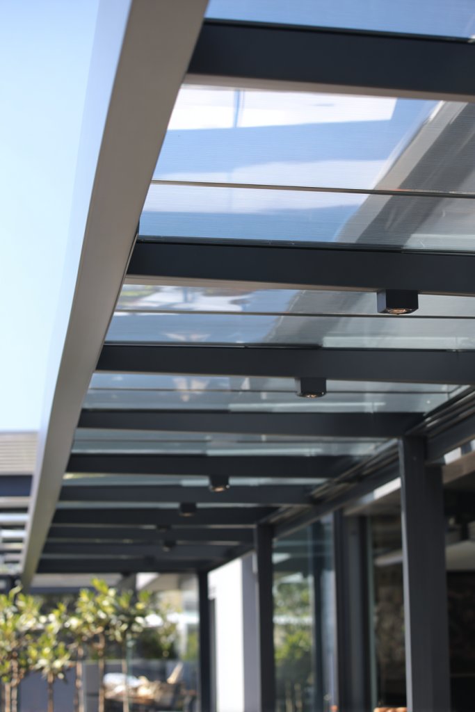 Visualize a pergola with matte black or brushed steel beams forming clean, straight lines. The frame is minimalist but commanding, with open sides that emphasize its structural strength. Complement it with concrete or stone flooring, and add textured outdoor cushions in monochrome shades. Integrated lighting, such as LED strips or spotlights, highlights the sleek design at night, creating a bold statement piece.