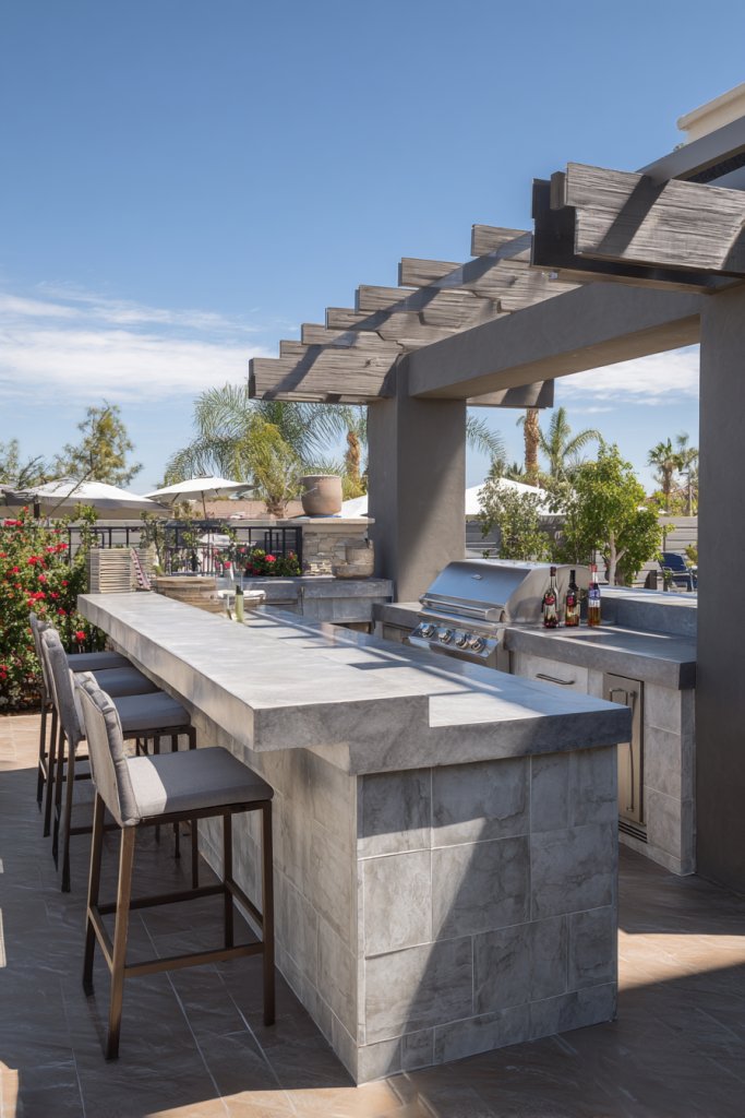 12. Pergola with a Built-In Outdoor Kitchen or Bar Area
