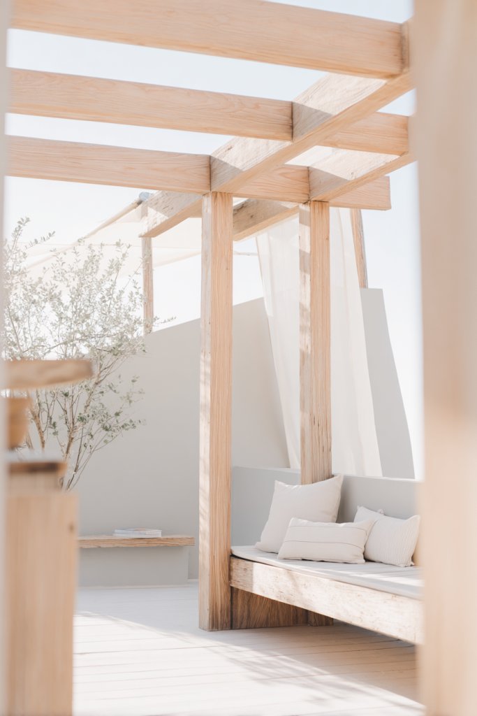 13. Scandinavian-Inspired Pergola with Light Wood and Simplistic Decor