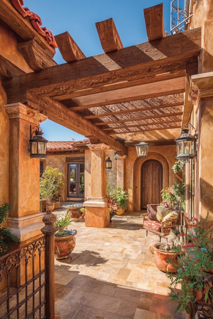 15. Mediterranean-Style Pergola with Terracotta Accents and Warm Colors