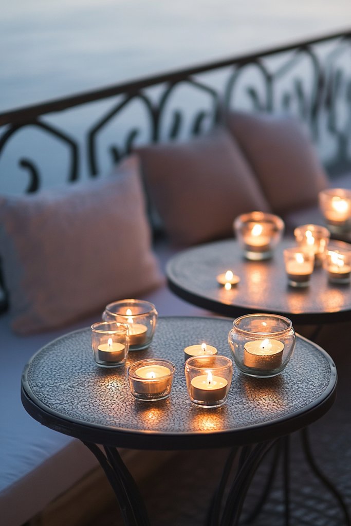 Place tea light holders and lanterns on tables, railing edges, or decorative trays. Use LED candles with flickering effects for safety and longevity. Secure lanterns with hooks or stands to prevent tipping. Consider battery-operated or solar-powered options for easy maintenance. Keep extra candles or batteries nearby for quick replacements. Regularly clean glass and metal surfaces to keep the glow bright and inviting.