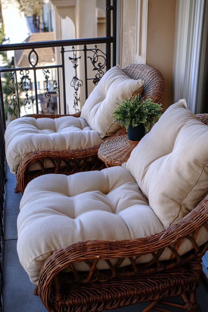 Opt for resin or synthetic rattan for durability in various climates. Mix and match cushion colors and textures—think velvet for luxury or linen for a casual look. Add weatherproof covers for the cushions to extend their life. For smaller balconies, slim-profile chairs work better, while larger spaces can support a sectional or multiple chairs. Seasonal accents like cozy blankets or lightweight throws can refresh the look year-round.