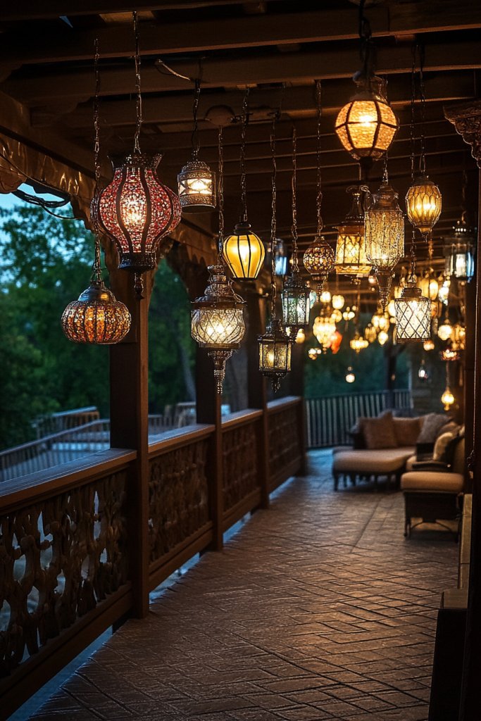 4. Hanging Lanterns and Pendant Lighting for a Magical Glow