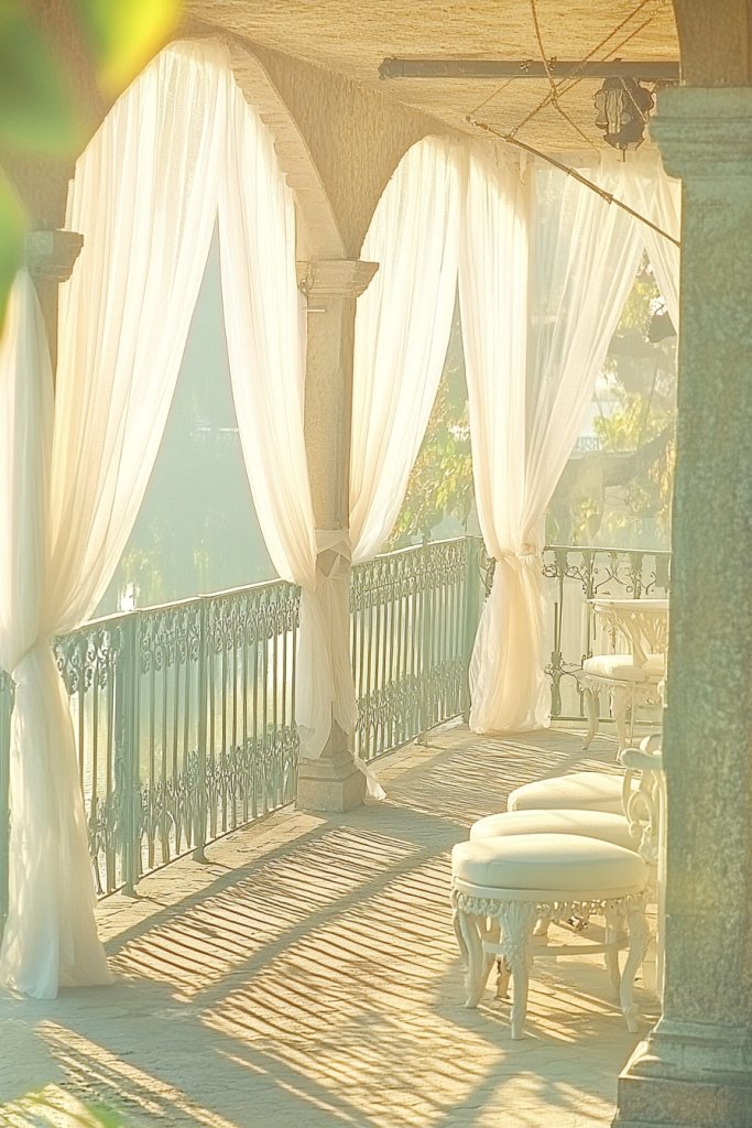 Envision flowing sheer fabrics or lightweight canopy materials billowing softly in a gentle breeze. They hang from ceiling beams or railing posts, creating a layered, textured look. The fabrics filter sunlight during the day, casting a delicate glow, while at night, they add an air of mystery and intimacy. The soft movement and translucent quality evoke a sense of calm and privacy, making your balcony feel like a secret garden.