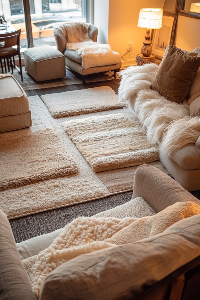1. Use Soft, Layered Area Rugs to Define Cozy Zones