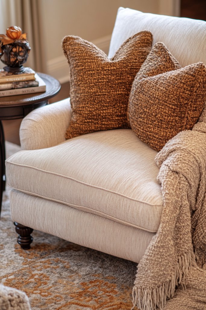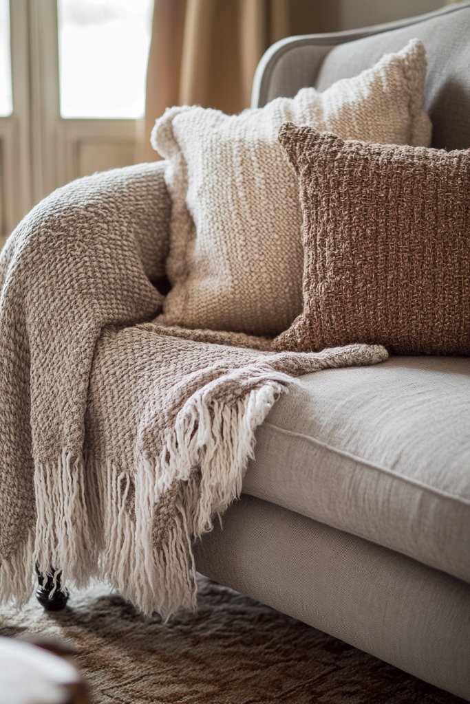12. Introduce Textured Fabrics and Blankets for Visual and Tactile Warmth