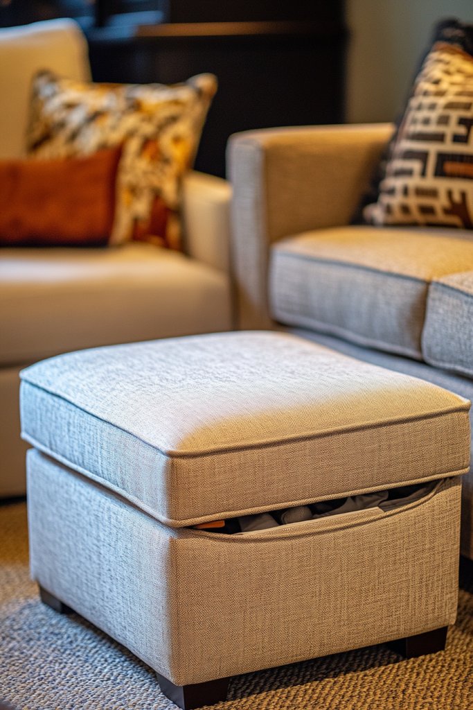 17. Incorporate Compact, Stylish Storage Ottomans for Dual Functionality