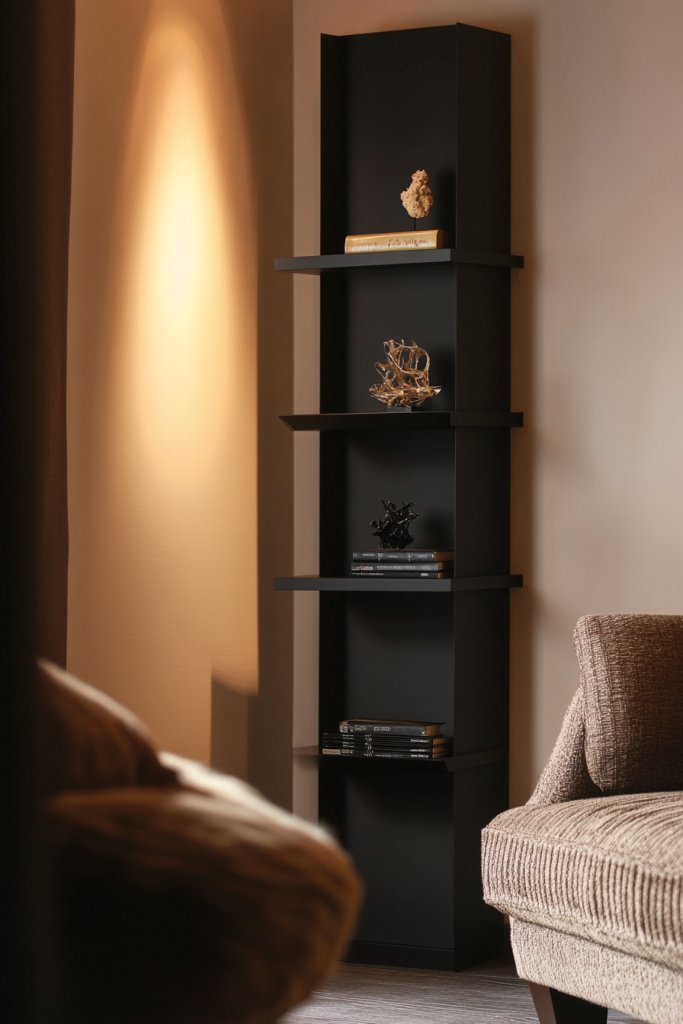 Clutter is the enemy of cozy in small apartments. Limited surface space makes it hard to display your favorite items without making things look chaotic. Vertical shelving offers a clever solution—maximizing wall space for both storage and decoration. It keeps essentials within reach while adding visual interest.