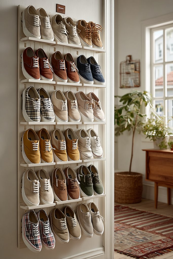 10. Add a Small Shoe Rack or Wall-Mounted Shoe Organizer