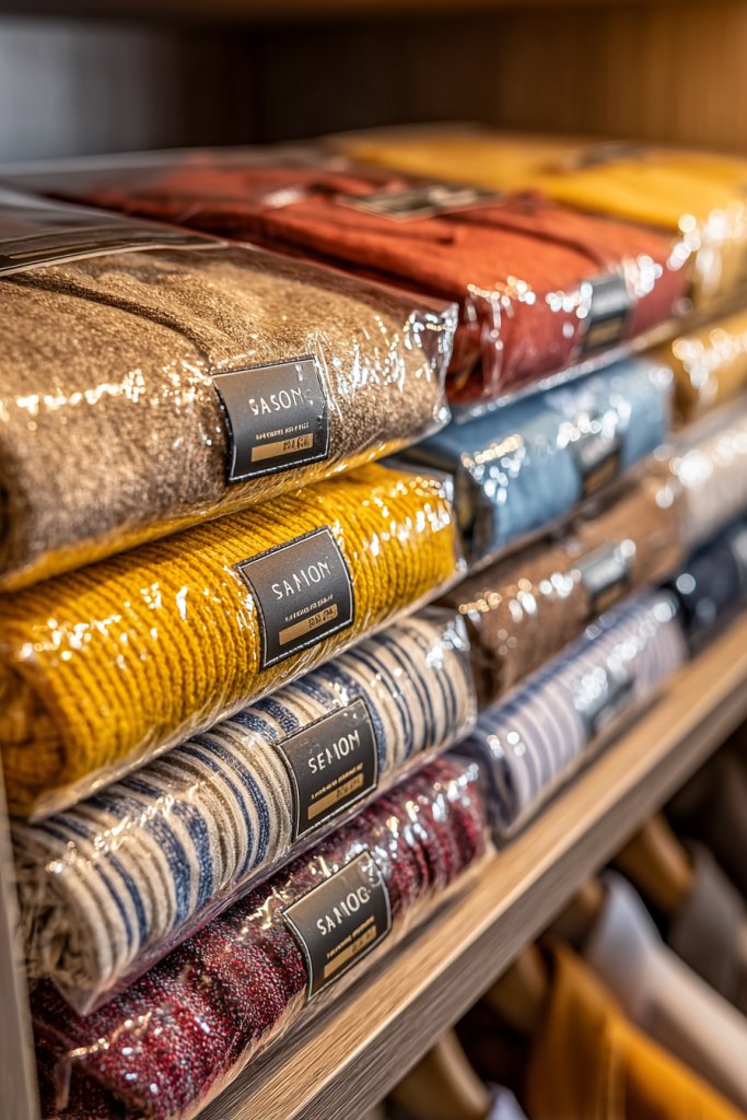 Picture a row of transparent, compressed bags labeled with seasons or clothing types. They sit neatly on shelves or in bins, taking up minimal space. When you need a winter coat or summer dress, just grab the right bag and release the air. The clear material allows instant identification, saving you time. The uniform shape and size give your closet a streamlined, organized look. It’s like a tiny storage unit in your own home.
