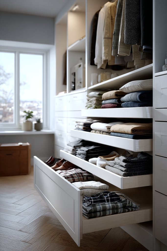 Tired of messy piles of shoes or folded clothes cluttering your closet? Pull-out drawer systems offer a sleek, hidden solution to keep everything tidy. They slide smoothly, giving you easy access while hiding clutter from sight. It’s like creating secret compartments that keep your space clean and stylish.