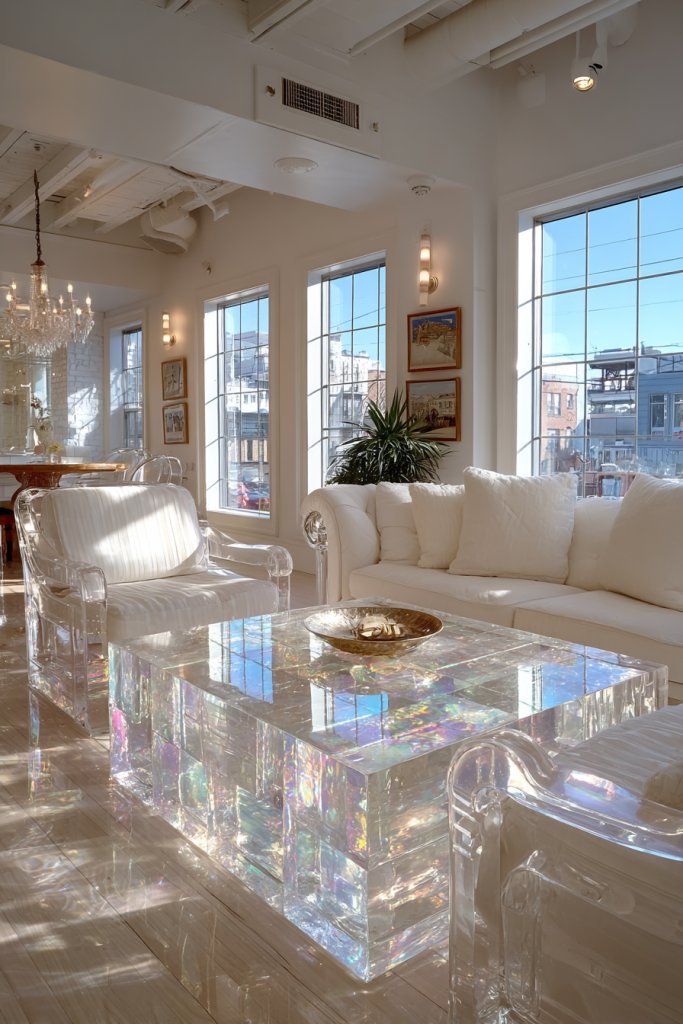 6. Clear Glass or Lucite Furniture for Visual Openness