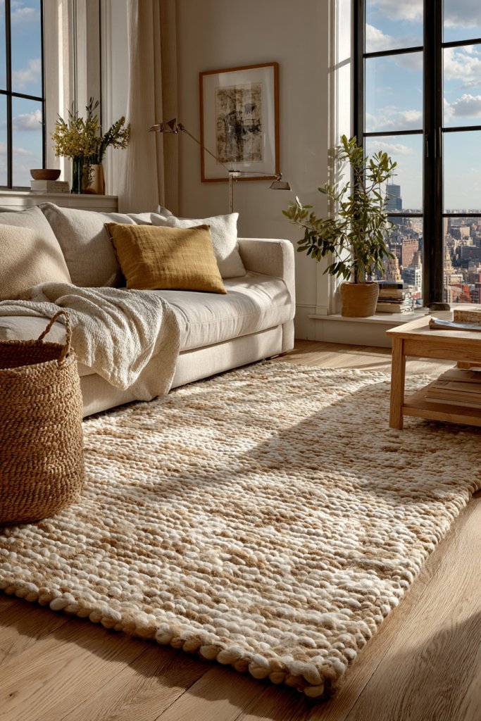 9. Light-Colored Rugs to Define Spaces Without Bulk