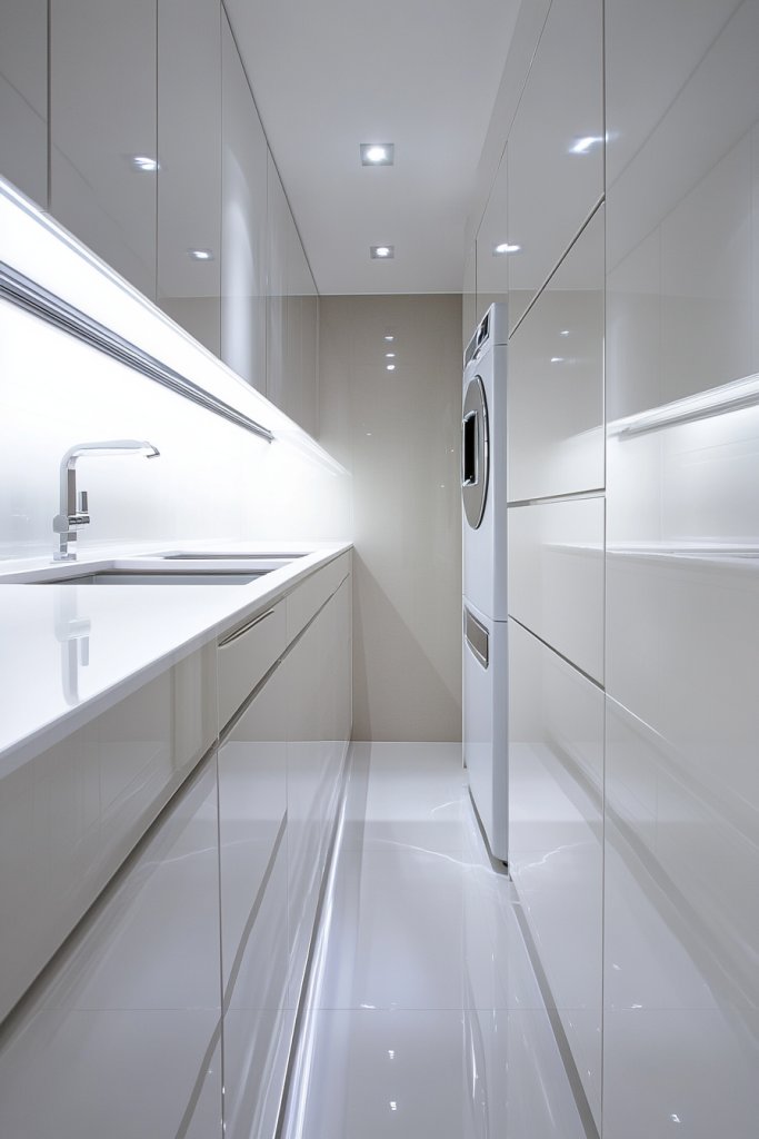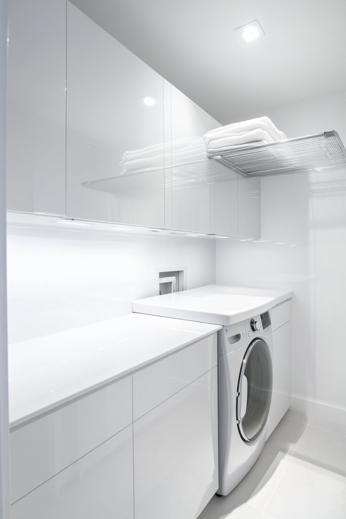 Looking for a way to instantly elevate your laundry space? Nothing says modern chic like high-gloss cabinets that reflect light and make small rooms feel bigger. These glossy surfaces add a sleek, sophisticated vibe that turns practicality into luxury. Who wouldn’t want a laundry area that feels upscale?