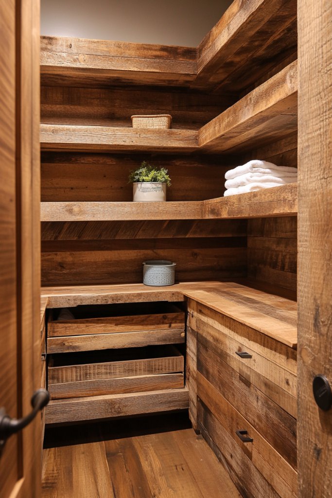 Reclaimed wood storage proves that beauty and eco-friendliness can go hand in hand. It’s a statement piece that showcases your values and style. Once you see how warm and inviting this space feels, you’ll be inspired to extend the look elsewhere. Your laundry room just became a conversation starter.