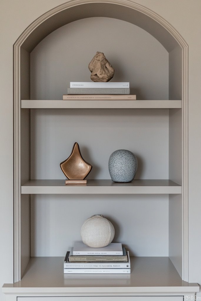 Add decorative storage boxes or baskets that reflect your style—woven, lacquered, or fabric-lined. Personalize with small plaques, stickers, or labels. Incorporate a small LED light or a decorative element above the niche to draw attention. It’s your chance to make a functional feature look like a piece of art.
