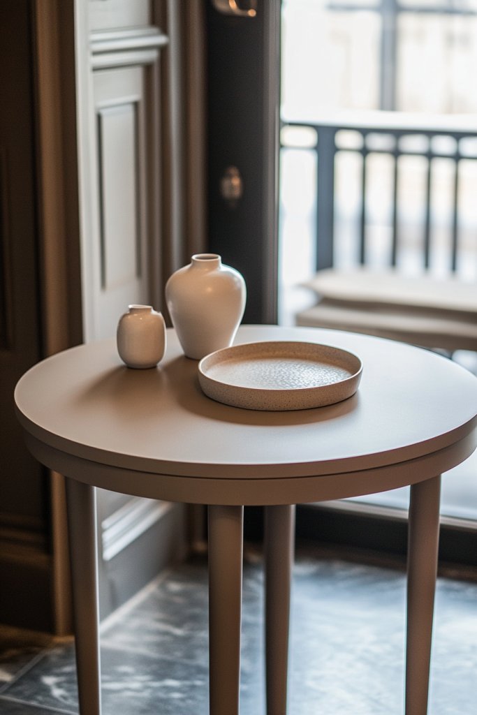 A compact round table creates a cozy focal point that’s both functional and charming. It’s a small upgrade with a big impact, making your entryway more inviting and organized. Trust that simple touches like this can elevate your home’s style effortlessly.