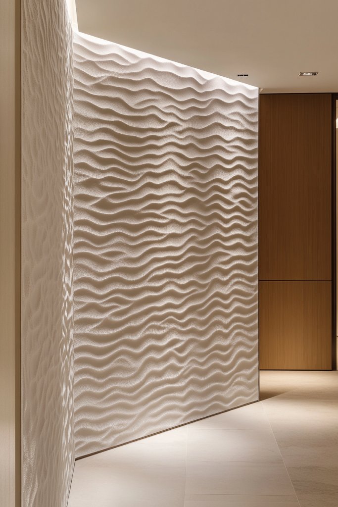 Add a few decorative objects around the textured wall—like a sculptural coat hook or a small shelf—avoiding clutter. Incorporate textiles or soft accents nearby to complement the tactile feel. Personalize with custom patterns or colors that evoke your personality—earthy tones for warmth, cool shades for calm.