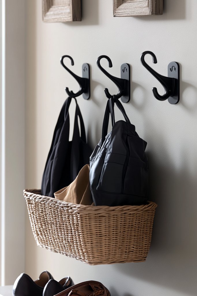 Choose hooks in finishes that match your hardware, from matte black to warm brass, to suit your style. For smaller spaces, install a few hooks with compact baskets; larger entries can accommodate a full wall of hooks with multiple baskets. Change the basket styles seasonally—use woven or fabric-lined baskets for different textures—and add decorative elements like tassels or leather accents.