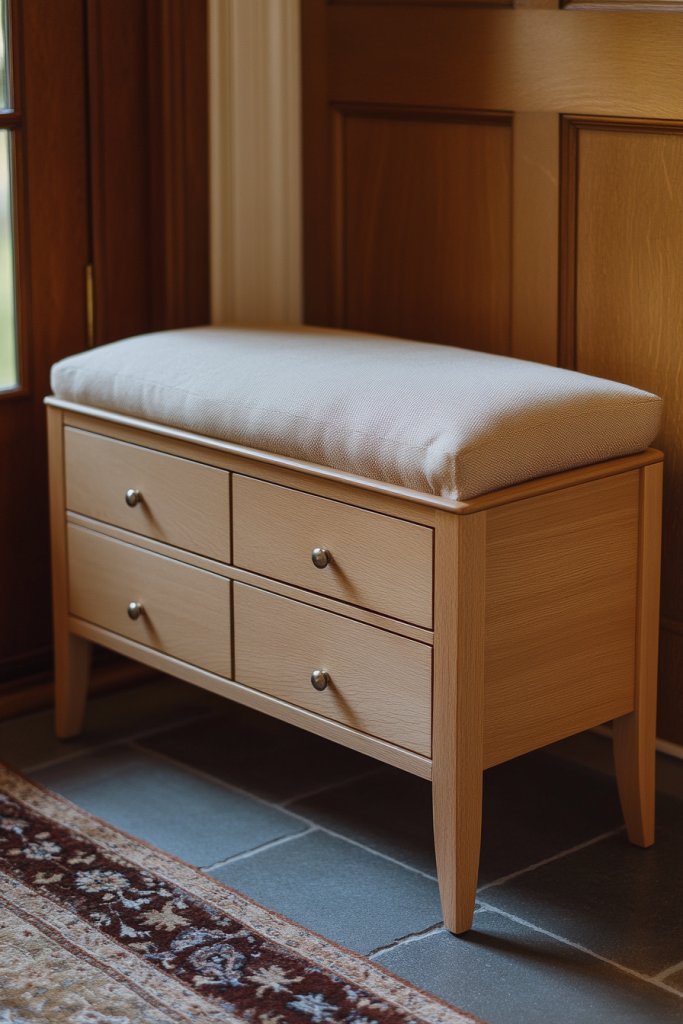 Design or purchase a built-in or freestanding bench that fits your space. Install storage compartments beneath the seat, in a style that complements your decor—wood, wicker, or painted finishes. Add a cushioned top for comfort, secured with non-slip pads. Organize shoes and outdoor accessories inside, and keep the area tidy with regular cleaning.