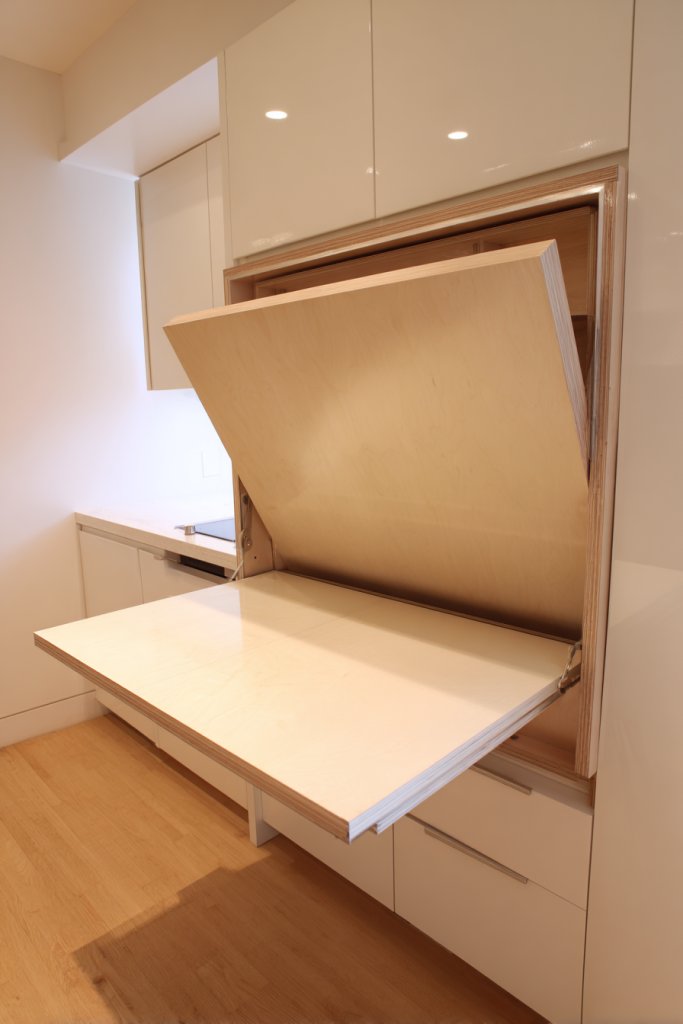 Imagine a sleek panel folded down from the wall, revealing a sturdy surface for chopping, mixing, or even serving snacks. When not in use, it folds back seamlessly, leaving your kitchen open and uncluttered. The surface can be finished in durable laminate, wood, or even stainless steel, blending into your decor. It’s like having an extra countertop without sacrificing space.