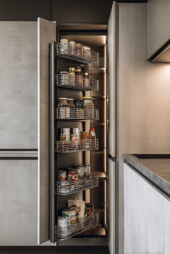 2. Incorporate Slim Pull-Out Pantry Shelves