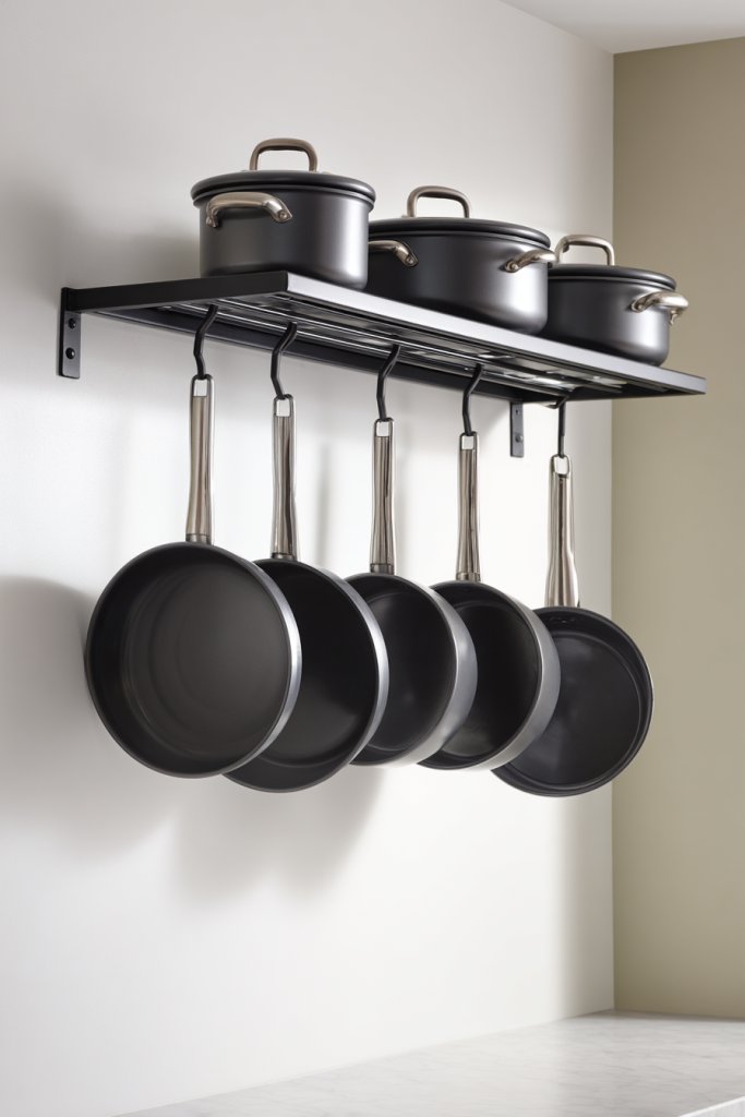 20. Incorporate a Compact, Wall-Mounted Pot Rack