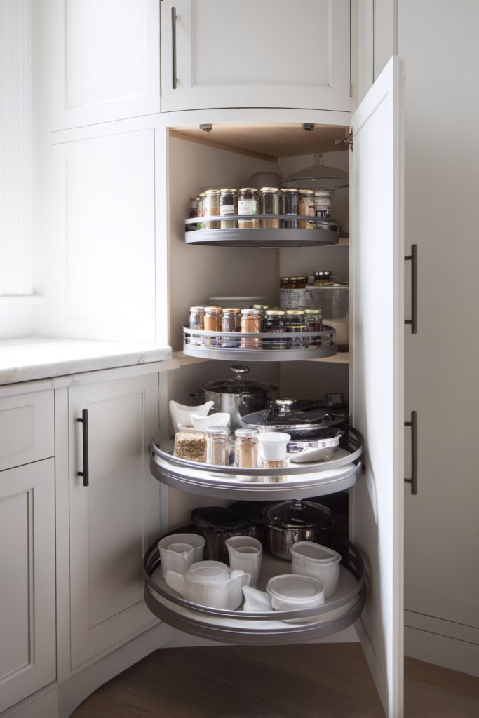 Corner cabinets in tiny kitchens often become black holes for pots, pans, and spices. It’s frustrating to dig around for that one elusive item, wasting time and patience. A corner carousel—aka lazy Susan—can make these awkward spaces work for you instead of against you.