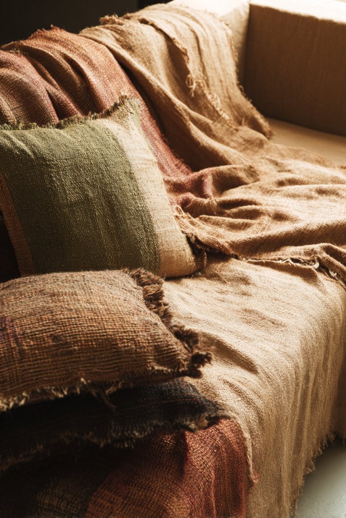 Tired of synthetic, mass-produced textiles that feel cold and uninspired? Organic-looking, handwoven textiles bring warmth, texture, and a personal touch to your living space. They embody the Wabi-Sabi ethos—beauty in imperfection and craftsmanship. Plus, they make your sofa or bed irresistibly cozy.