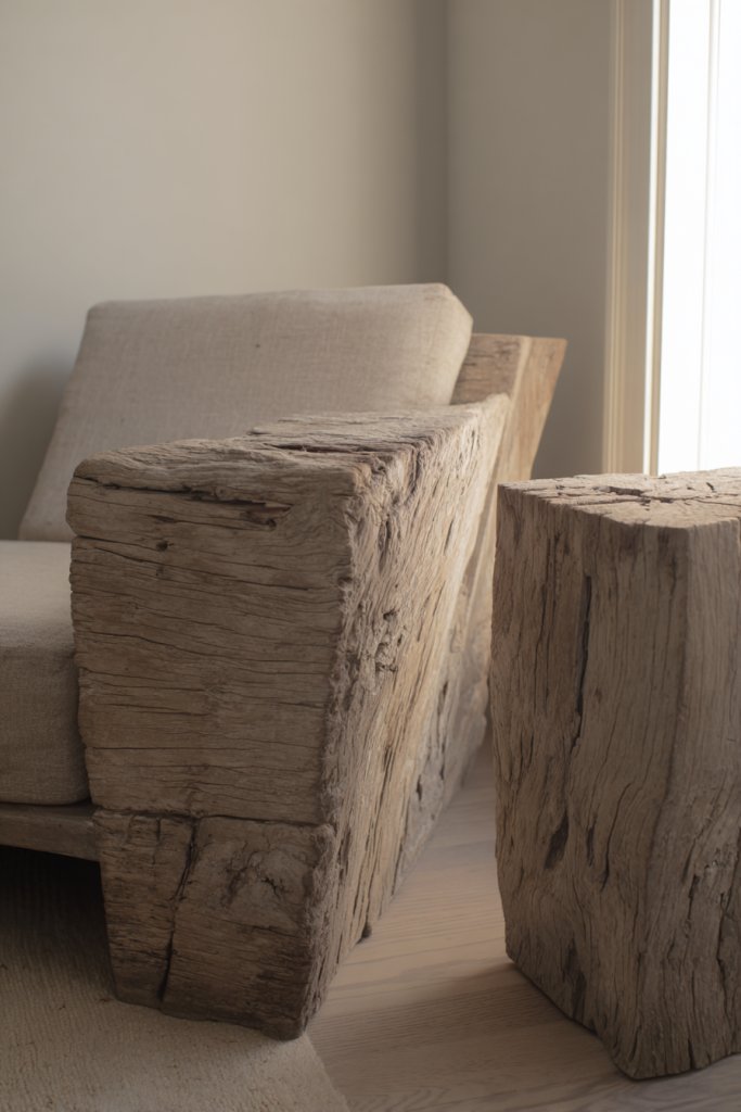 2. Incorporate Raw Wood Furniture with Weathered Finishes for Authenticity
