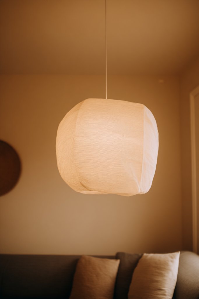 7. Select Minimalist Lighting with Soft, Diffused Glow Using Paper or Fabric Shades